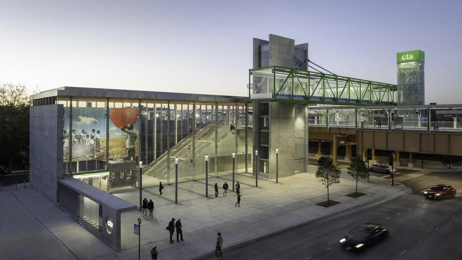 Damen Green Line Station, a Perkins&Will-designed subway station in Chicago’s Westhaven Park neighborhood, was named as a finalist in the AIA Chicago 2025 Design Excellence Awards.