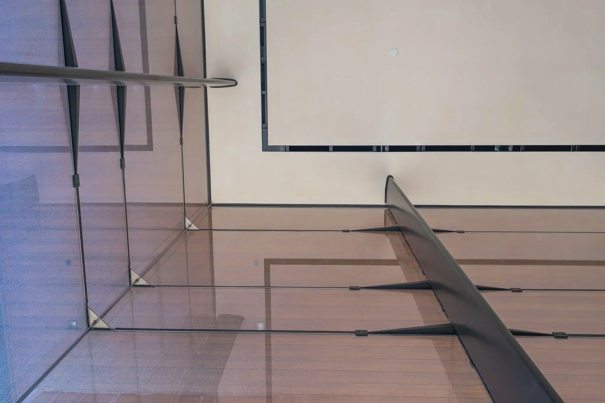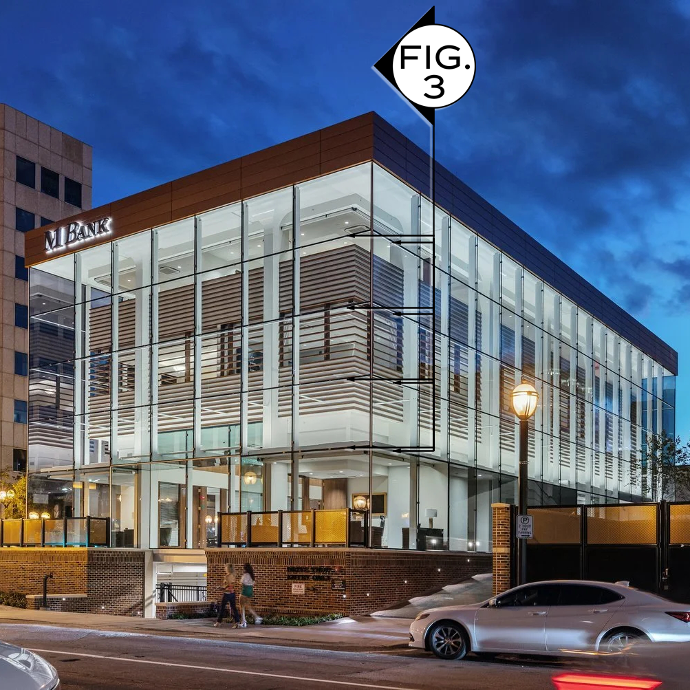 Figure 2 · Installed all-glass corner with concealed horizontal plates. M1 Bank in St. Louis→