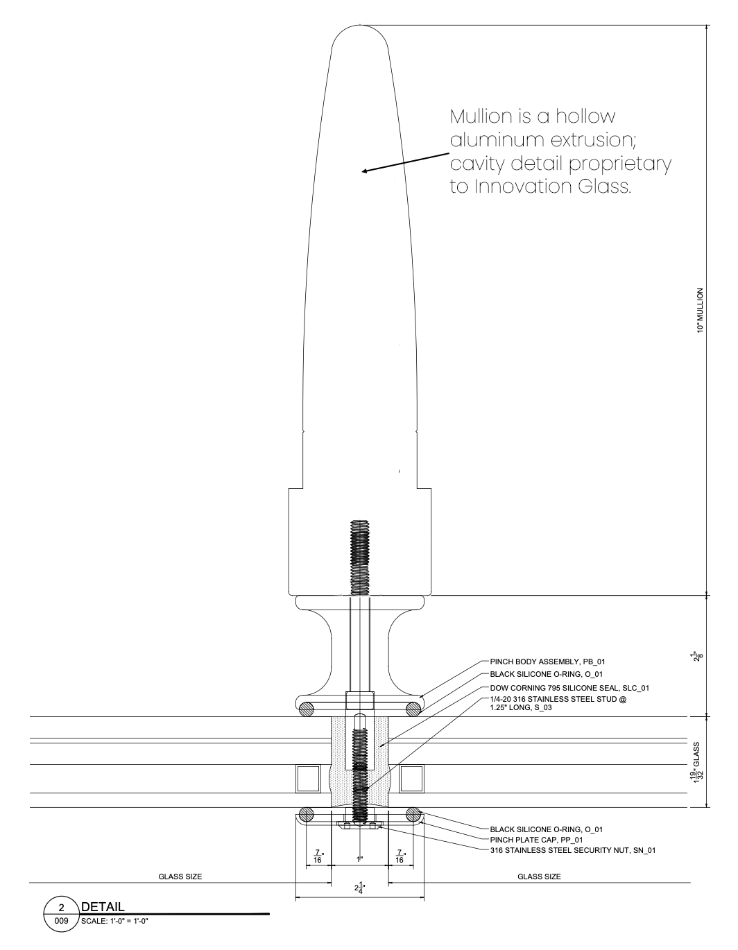 VS1-A100 – Standard point-supported system w/ offset glazing and external patch fitting